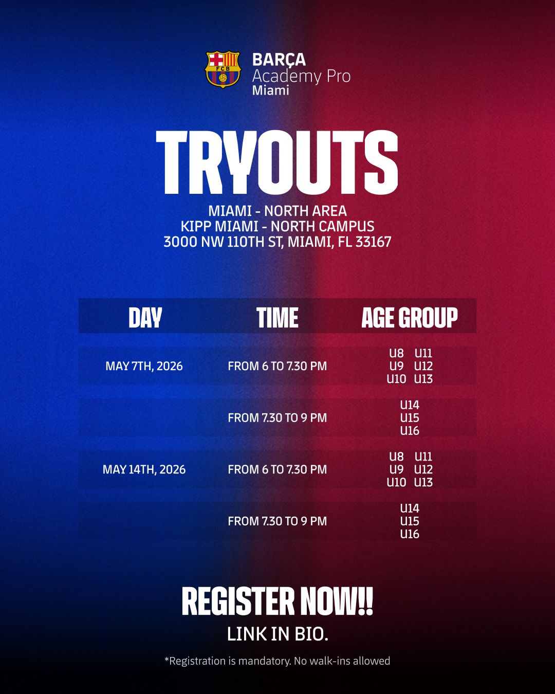 [SEASON 2026/27] TRYOUTS @ KIPP MIAMI - NORTH CAMPUS