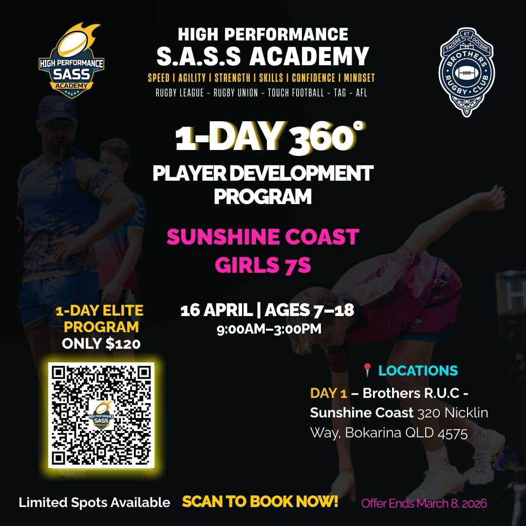 Maximise your physical and mental potential by joining us for the renowned 2-Day 360 Degree Player Development Program! This program is specifically tailored to elevate sporting performance by enhancing speed, agility, strength and skill levels of female and male athletes aged 7 - 18 years in rugby league, rugby union, touch football, tag & AFL.