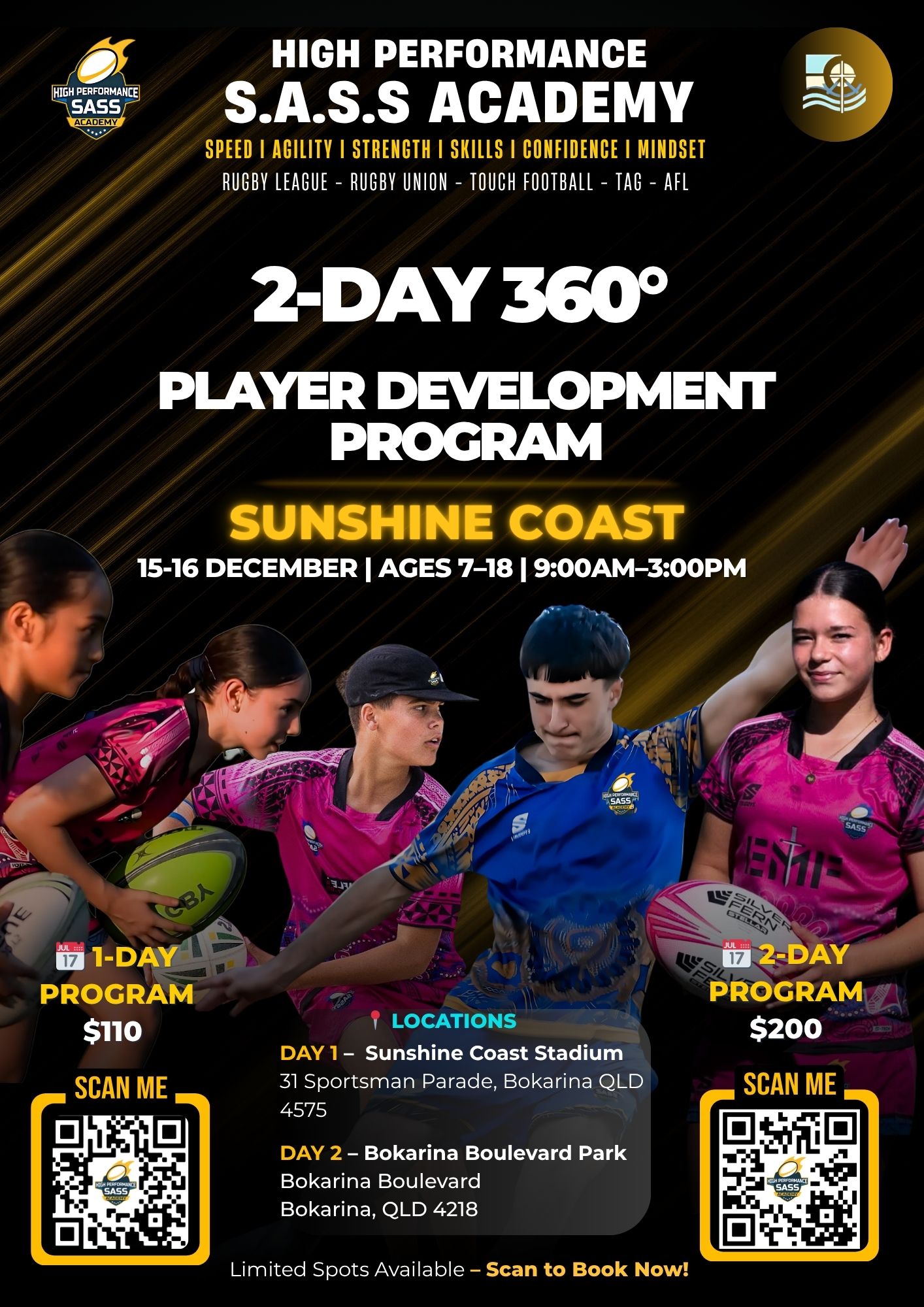 π MAXIMISE YOUR POTENTIAL AT THE HIGH PERFORMANCE S.A.S.S ACADEMY 1-DAY 360 DEGREE PLAYER DEVELOPMENT PROGRAM - MORETON BAY π