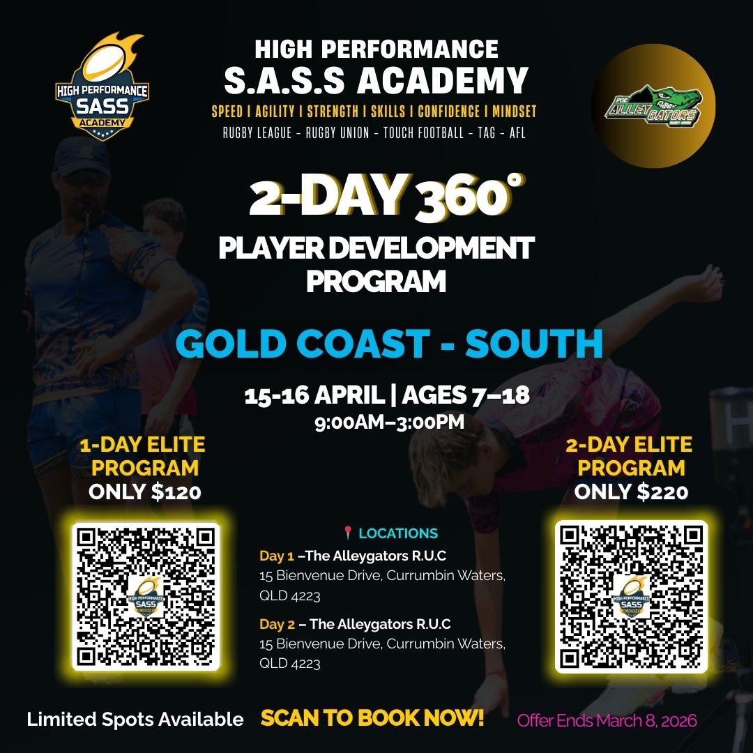 We will add you to the team group chat post-registration manually to stay updated on the S.A.S.S Academy 2-Day 360 Player Development Program, taking place at Palm Beach Currumbin Alleygators Rugby Union Club and Pratten Park Broadbeach on the Gold Coast π²π